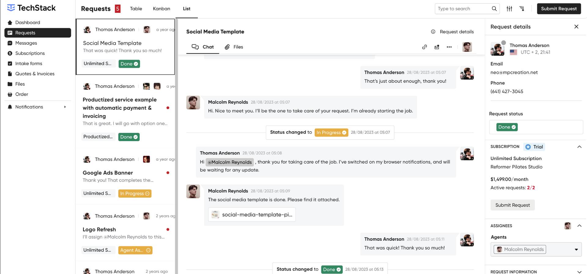 TechStack gives you a clean dashboard to submit tasks, set priorities, assign deadlines, and check status — just like you would with your in-house team. Only faster.